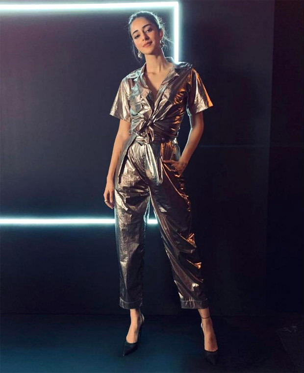 Ananya Panday stuns in a metallic jumpsuit with a plunging neckline